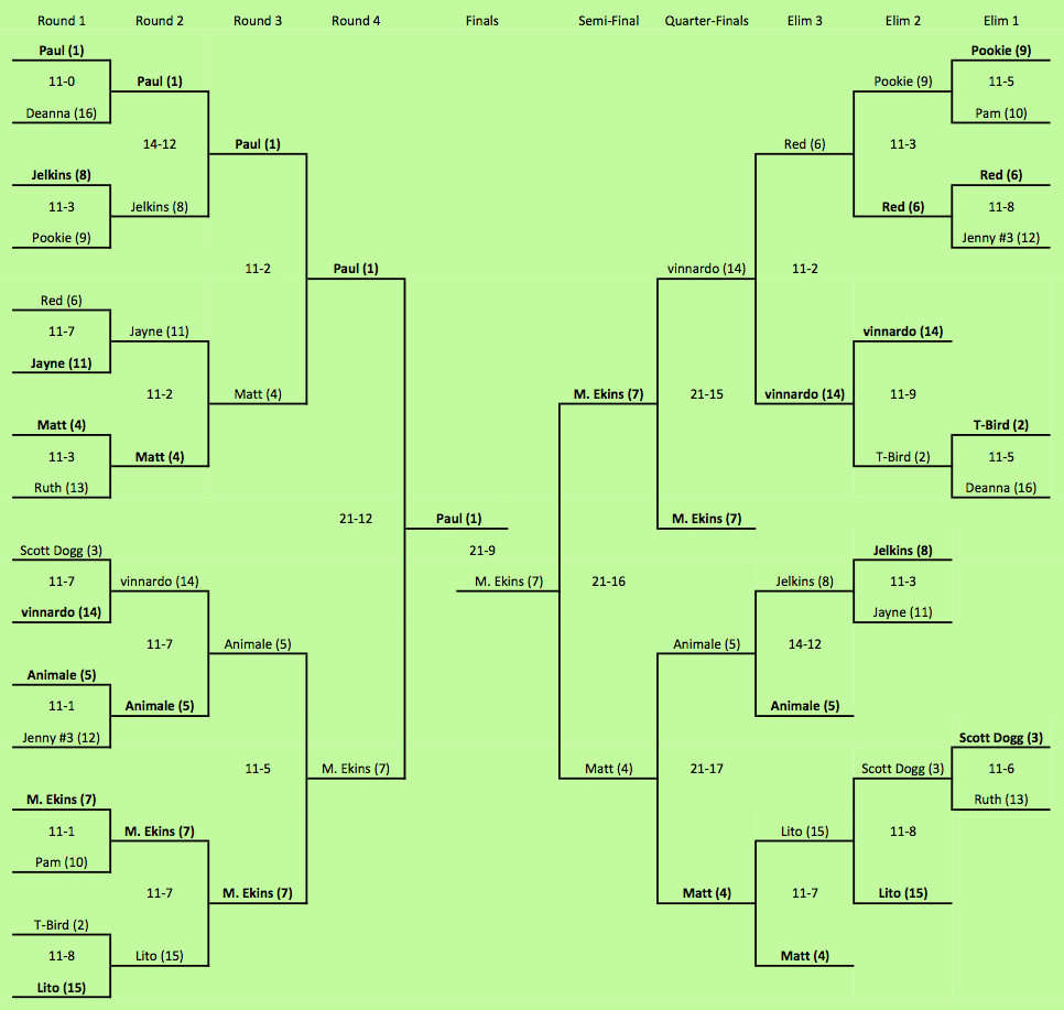 (*) Obstacle Ping Pong Tiebreaker, 21-15